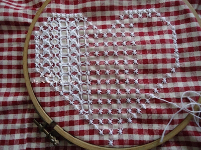 Ecco il mio secondo lavoro, in genere mi piace fare gli imparaticci ma che abbiano un senso e che poi posso riutilizzare. Quindi ecco un'altro cuore, ora dovrò pensare a come collocarli se su un cuscino e su un grembiule di cucina.